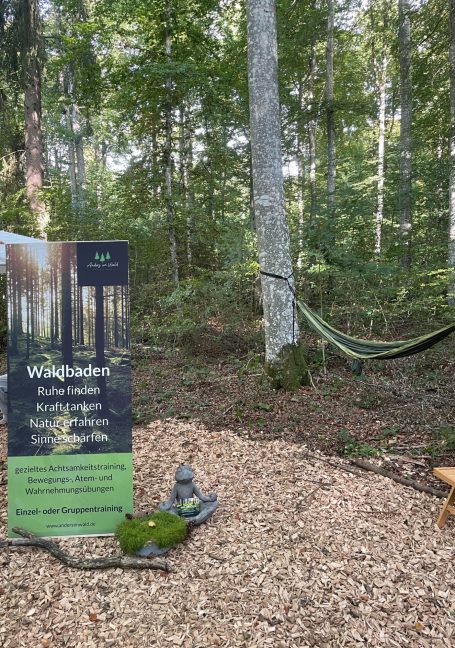 an meinem Stand "Waldbaden" gleich an der 1. Kreuzung (vom Parkplatz aus geradeaus)